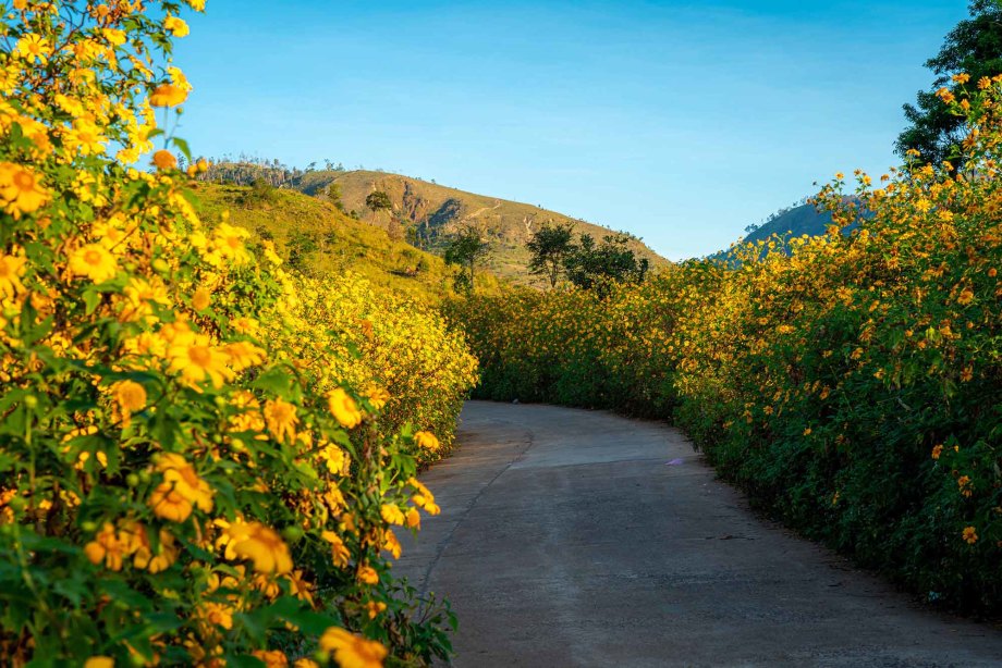 달랏은 초가을이며 건조한 계절이 시작되는 시기예요. 따뜻한 햇빛에 의해 이 유명한 꽃의 밝은 노란색이 더욱 아름답게 빛나요. 이 때에는 사람들이 함께 꽃 구경을 하기 위해 모이고 짜뀌 꽃 길이나 하나의 언덕에서 찍은 사진들을 볼 수 있어요.